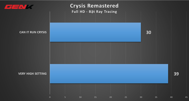 Thực tế, ở tùy chọn cao nhất (Can it run Crysis), cặp đôi Ryzen 7 5800H và RTX 3070 chỉ đạt mức FPS trung bình khoảng 30 FPS và liên tục trồi sụt. Ngay khi hạ xuống tùy chọn Very High, mức FPS đạt được trung bình chỉ khoảng 39 FPS.