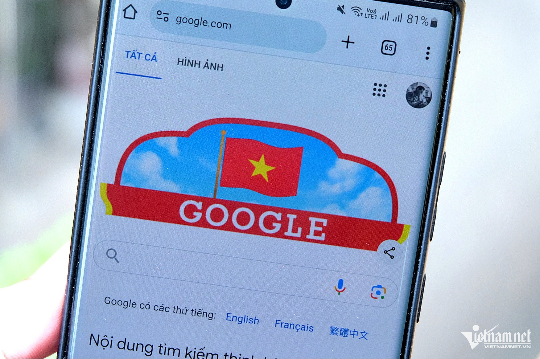 Vào trang tìm kiếm Google trong sáng ngày 2/9, nhiều người cảm thấy bất ngờ khi xuất hiện hình ảnh lá cờ đỏ sao vàng - quốc kỳ Việt Nam tung bay phấp phới trên nền trời xanh. Khi click vào hình ảnh lá quốc kỳ, người dùng mạng sẽ được đưa tới những nội dung thông tin giải thích sự ra đời của ngày Quốc khánh Việt Nam.