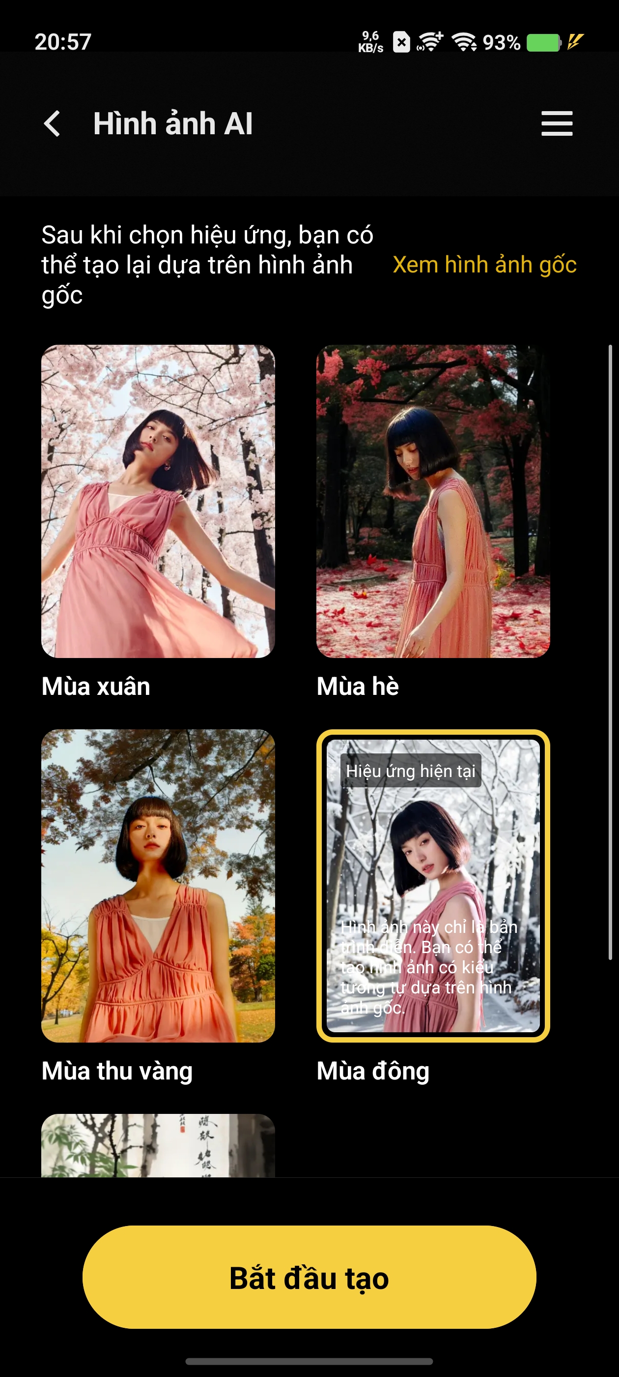 Thực chất, chế độ chụp Bốn Mùa bằng AI đã xuất hiện từ thế hệ vivo X100 series, nhưng phải tới gần đây khi mà nhiều người dùng Việt Nam sử dụng chế độ này để chụp cảnh tuyết rơi tại Hà Nội, TP. Hồ Chí Minh thì tính năng này mới được nhiều người biết tới. Tùy theo hiệu ứng mùa mà người dùng chọn, AI sẽ xử lý thêm các chi tiết để tạo ra một khung cảnh giống nhất với mùa đấy, ví dụ mùa đông thì thêm tuyết rơi, ảnh hơi xám xịt, còn mùa thu thì có thêm lá phong màu vàng cam,...