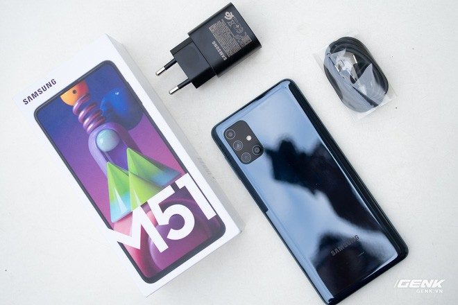 Cách đóng hộp của Galaxy M51 cũng tương đối đơn giản, chỉ bao gồm máy, củ sạc 25W và dây sạc C to C
