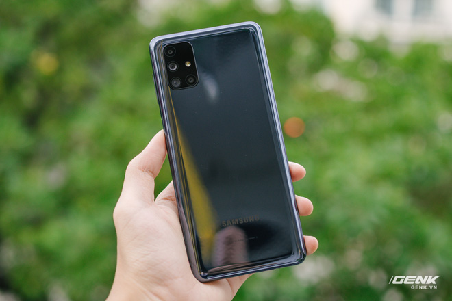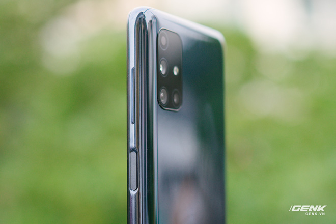 Do phải "gánh" viên pin có dung lượng lớn 7000mAh nên Galaxy M51 dày tới 9.5mm và nặng 213g chứ không hề được mỏng nhẹ như Galaxy A71 (mỏng 7.7mm và nặng 179g). Về cảm giác cầm nắm, rõ ràng Galaxy A71 với viên pin 4500mAh sẽ cho trải nghiệm tốt hơn