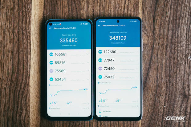 Benchmark thử với phần mềm AnTuTu thì 2 máy có điểm hiệu năng khá tương đồng nhau với cách biệt không quá lớn