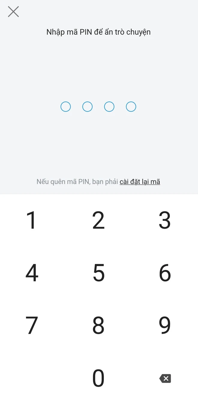 Để ẩn tin nhắn, người dùng chọn Ẩn trò chuyện > Nhập mã PIN (Nếu chưa đặt hay quên mã Pin, người dùng có thể chọn Cài đặt lại mã để đặt lại).