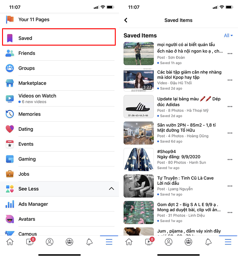 Để xem lại, bạn chỉ cần nhấn nút trình đơn (hình ba thanh ngang) ở dưới cùng góc phải trong ứng dụng Facebook. Tiếp đến chọn Saved (Đã Lưu) là bạn có thể tìm lại bài viết đó một cách vô cùng dễ dàng.
