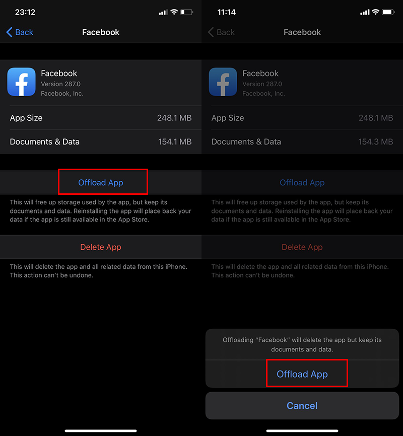 Việc đơn giản bạn cần làm lúc này chính là nhấn nút Offload App (Gỡ bỏ ứng dụng). Thao tác này sẽ giải phóng lượng không gian ứng dụng Facebook chiếm dụng nhưng không xóa dữ liệu và tài liệu của ứng dụng.