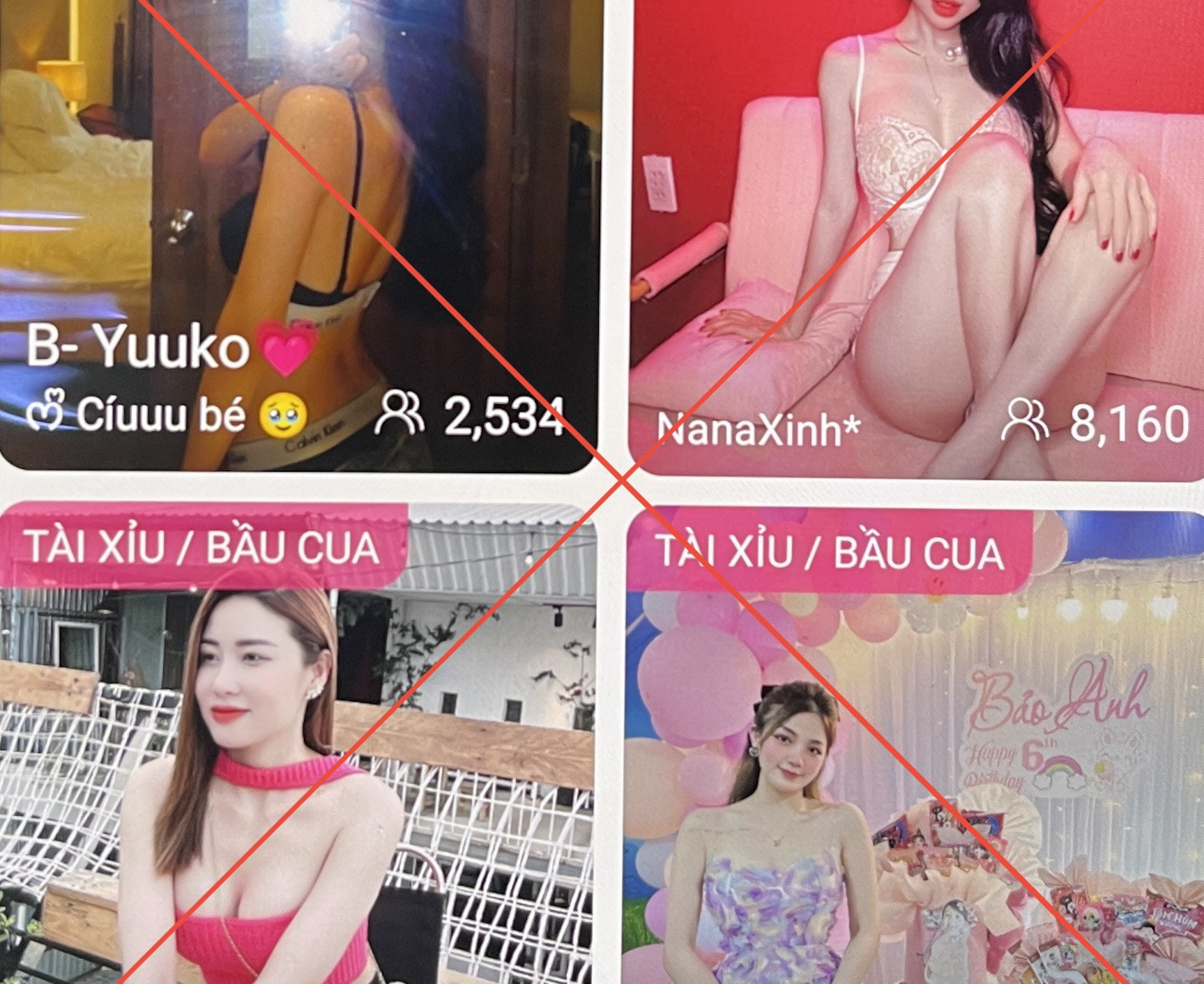Qua tìm hiểu của PV VietNamNet, các quảng cáo này đều hướng người dùng tới 2 ứng dụng phổ biến là M*liv* hay ho*liv*. Các ứng dụng này đều tích hợp game bài đổi thưởng, hay các cô gái ăn mặc sexy và thậm chí là khoả thân… livestream mời người tham gia chơi tài xỉu, bầu cua hoặc xem các video "cảnh nóng".
