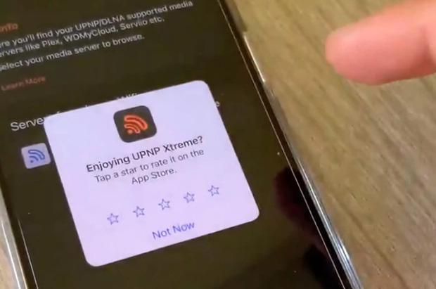 UPNP Xtreme là ứng dụng cho phép truyền trực tuyến nội dung lên TV từ iPhone và iPad của họ. Tuy nhiên ứng dụng này sẽ nhắc xếp hạng App Store ngay sau khi bật lần đầu tiên. Nhưng nó sẽ không hoạt động cho đến khi bạn để lại đánh giá. Theo đó ứng dụng này yêu cầu bạn cần xếp hạng tối thiểu 3 sao để sử dụng. Tuy nhiên hiện tại ứng dụng này đã bị xóa khỏi App Store.