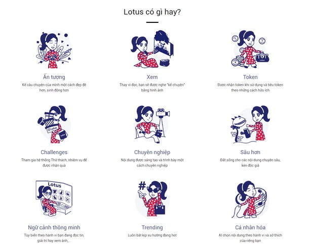 Ngay từ cái nhìn đầu tiên, Lotus đã được định hướng mang trong mình điểm khác biệt đặc trưng khi lấy nội dung chất lượng làm trọng tâm, tạo nên một nền tảng hỗ trợ các nhà sản xuất nội dung (content creator) và bất kỳ cá nhân người dùng nào khác thỏa sức sáng tạo.
