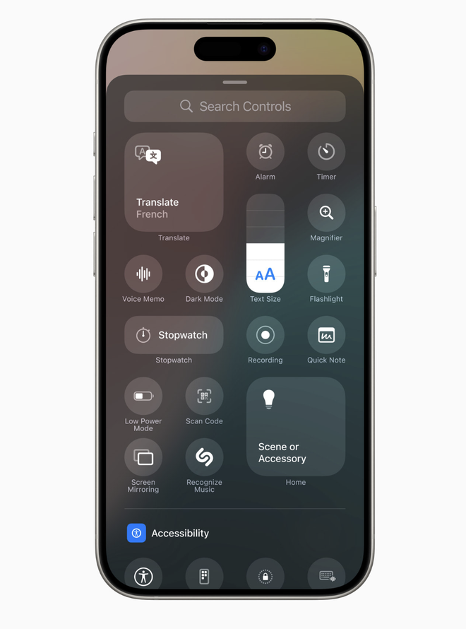 Ngoài việc đa dạng màu sắc, iOS 18 còn mang đến nâng cấp của Control Center, người dùng có thể điều chỉnh kích thước, vị trí các phím ảo, custom trực tiếp vào các icons trên màn hình chính, Action Center (trung tâm điều khiển)...