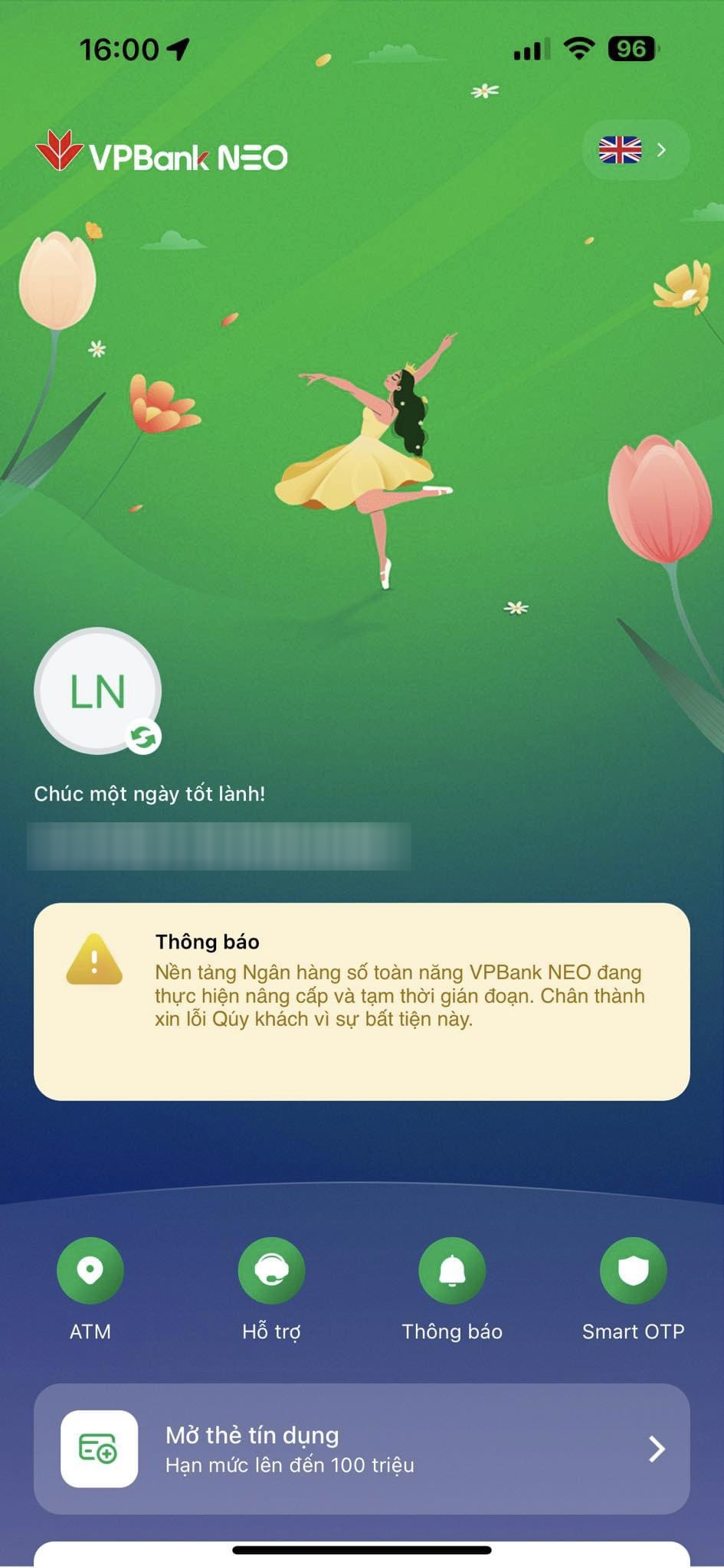 Trong buổi chiều ngày 31/10/2023, ứng dụng VPBank NEO của ngân hàng Việt Nam Thịnh Vượng VPBank bất ngờ gặp lỗi lớn. Người dùng vừa vào app đã nhận được dòng thông báo: "Nền tảng Ngân hàng số toàn năng VPBank NEO đang thực hiện nâng cấp và tạm thời gián đoạn. Chân thành xin lỗi Quý khách vì sự bất tiện này". Đáng nói, hôm nay ngày 31/10 là ngày cuối tháng và cũng là ngày phát lương của rất nhiều công ty tại Việt Nam.