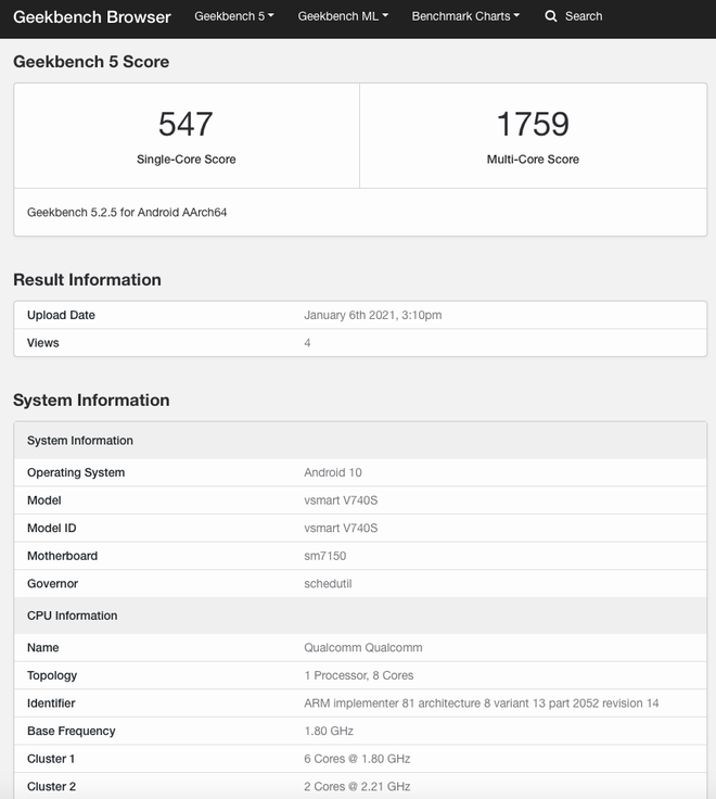 Thực tế, tin đồn này hoàn toàn có cơ sở. Một hình ảnh được trích xuất từ tài liệu FCC cho thấy Vsmart One sẽ có mặt lưng được khoét một cụm camera hình vuông, rất giống với Vsmart Aris. Ngoài ra, thông tin từ công cụ benchmark Geekbench cho thấy Vsmart V740S sẽ sở hữu chip Snapdragon 730 và RAM 6GB - tương tự như chiếc Vsmart Aris hiện nay.