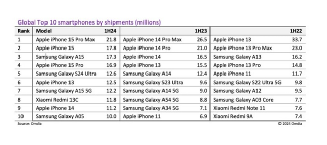 Trong danh sách 10 mẫu điện thoại thông minh bán chạy hàng đầu thế giới 6 tháng đầu năm, Redmi 13C là chiếc smartphone duy nhất của Xiaomi lọt Top 10, xuất sắc vượt qua cả mẫu điện thoại cao cấp của Samsung là Galaxy S24 Ultra.
