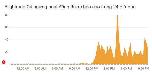 Ghi nhận của DownDetector cho thấy, kể từ trưa nay (24/2), liên tục xuất hiện phản ánh từ người dùng khắp thế giới về việc gặp sự cố khi truy cập Flightradar24. Các sự cố này đều liên quan đến việc không thể cập nhật diễn biến trên bản đồ hay truy cập website, ứng dụng. Trong đó, có đến 48% lượng phản ánh cho biết không thể truy cập trực tiếp vào website.