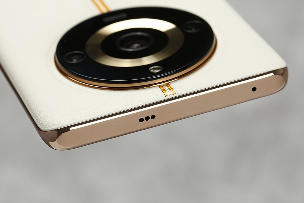 Realme 11 Pro nổi bật với mặt lưng da và tạo hình bo cong trên thân máy. Cùng với chất liệu da, hoạ tiết thêu thủ công cũng là một điểm nhấn tạo nên sự mới mẻ cho diện mạo của chiếc smartphone này.