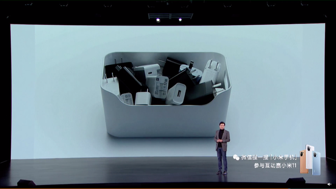 Ngược lại, Xiaomi tuyên bố rằng hãng này sẽ tặng sạc miễn phí cho người dùng nếu như họ có nhu cầu sử dụng. Mặc định, Mi 11 sẽ không đi kèm củ sạc, nhưng người dùng có quyền lựa chọn phiên bản có đi kèm củ sạc GaN 55W mà không tốn thêm một xu.