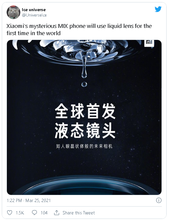 Ống kính bằng chất lỏng trên smartphone sẽ là một thử nghiệm mới, phù hợp với dòng Mi MIX của Xiaomi, vốn là dòng sản phẩm đi tiên phong với những công nghệ tiên tiến. Vào năm 2018, Xiaomi đã ra mắt Mi MIX 3 với màn hình trượt độc đáo. Năm sau đó, Xiaomi tiếp tục ra mắt Mi MIX Alpha với thiết kế màn hình bao quanh gần như toàn bộ chiếc smartphone. Còn năm nay, chiếc Mi MIX tiếp theo của Xiaomi có thể có thiết kế màn hình gập.