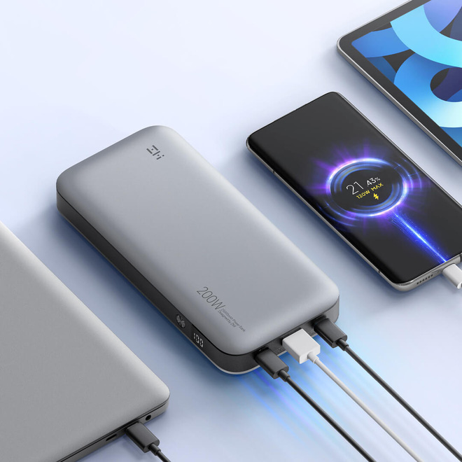 Giống như các mẫu sạc dự phòng khác của Xiaomi, ZMI No.20 Power Bank Pro 200W cũng có thể sạc cho cả laptop. Ấn tượng hơn, nó còn cho phép người dùng sạc nhanh các mẫu laptop hỗ trợ 96W (ví dụ như MacBook Pro), tăng đến 75% dung lượng pin chỉ trong 1 giờ.