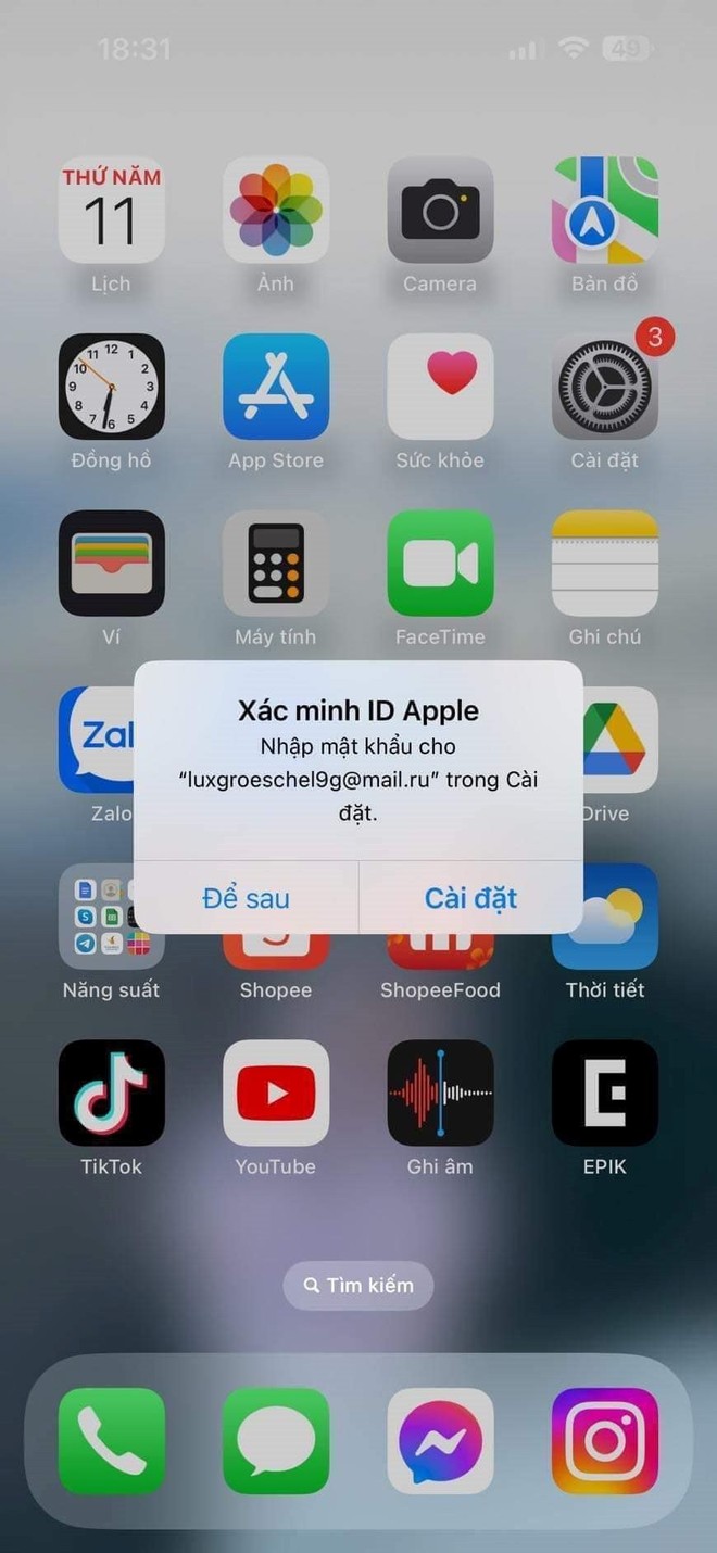 Tối 11/4, một số người dùng iPhone tại Việt Nam nhận được thông báo dạng pop-up trên máy, đề nghị "Xác minh ID Apple" bằng cách nhập mật khẩu trong phần cài đặt. Tuy nhiên, Apple ID hiển thị trên màn hình là một tài khoản email lạ. Điều này khiến người dùng iPhone gặp nhiều hoang mang, nhất là khi Apple vừa gửi cảnh báo nóng về một cuộc tấn công bằng phần mềm gián điệp với các thiết bị iOS.