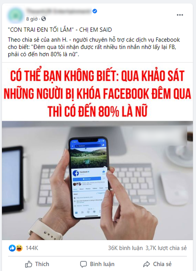 Đến 17h30, chủ tài khoản có tên là D.N.L đăng dòng status với nội dung: "Chiều 18/8, Việt Nam ghi nhận thêm 18.989 ca mất Facebook trong cộng đồng; 90 % đối tượng là nữ, tăng thêm 5% so với buổi sáng. Tất cả đều nguy cơ mất vĩnh viễn", khiến ai nấy đều ngỡ ngàng.