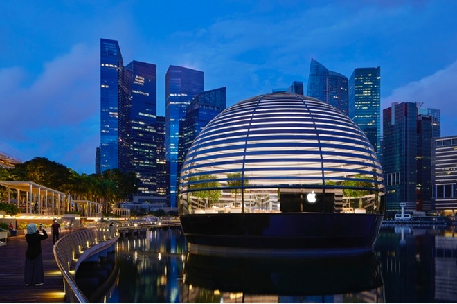 Cho đến hiện tại, Apple Store mới có ở 2 quốc gia thuộc khu vực Đông Nam Á là Singapore (3 cửa hàng) và Thái Lan (1 cửa hàng). Các cửa hàng này có đặc điểm chung là phía mặt tiền chỉ xuất hiện duy nhất logo táo khuyết phát sáng, không đi kèm tên gọi "Apple Store"hay "Apple Center" hoặc bất cứ từ ngữ nào liên quan đến Apple.