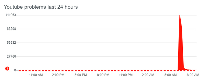 Đại diện YouTube sau đó thông báo trên Twitter: "Vấn đề kéo dài khoảng 20 phút, liên quan tới việc truy cập trang home, thuê bao, tìm kiếm... và hiện đã được khắc phục". Tuy nhiên, dịch vụ này không nêu nguyên nhân sự cố. Một số người dùng điện thoại Android cho biết ứng dụng YouTube Mobile hiển thị mã "429", cho thấy vấn đề xuất phát từ các máy chủ của YouTube.