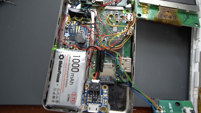 Các phần cứng được Guy Dunpont thay thế ngoài bộ Raspberry Pi Zero W còn bao gồm một màn hình màu LCD mới, một mô-tơ rung và một viên pin 1000mAh có thể sạc lại được.