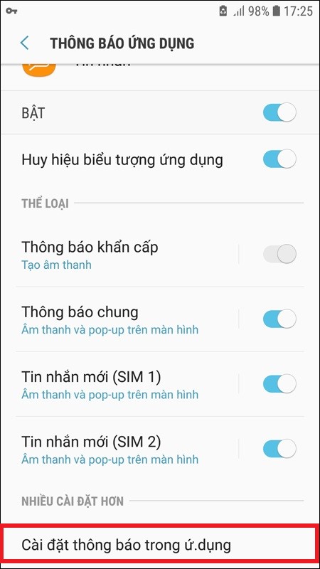 Bước 4: Chọn vào phần Cài đặt thông báo trong ứng dụng.