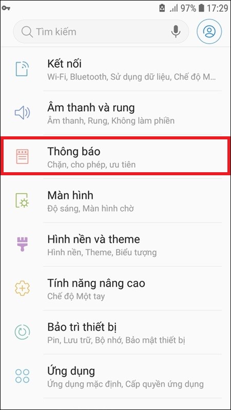 Bước 2 : Sau đó, bạn chọn tại mục “ Thông báo ”.