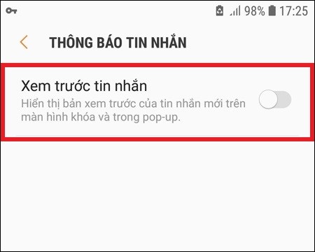 Bước 5: Ở phần Xem trước tin nhắn, bạn gạt nút sang trái để ẩn nội dung của tin nhắn khi nó xuất hiện trên màn hình thông báo.