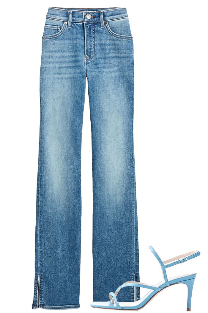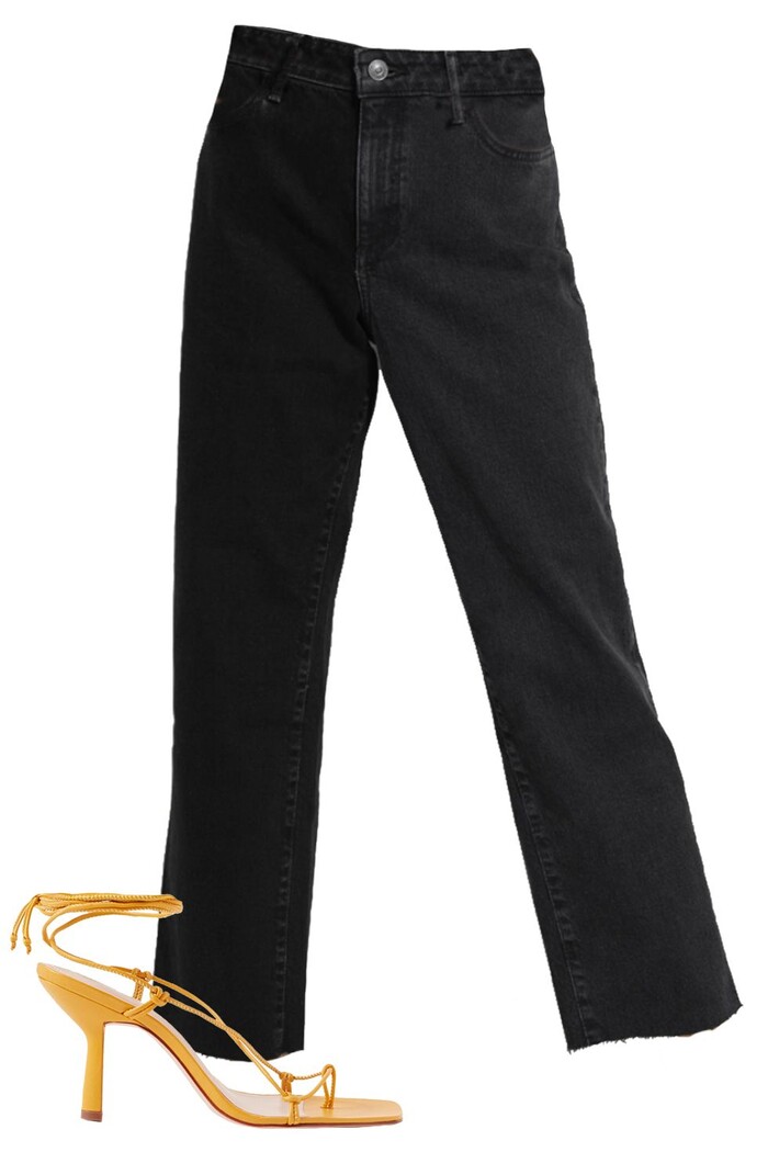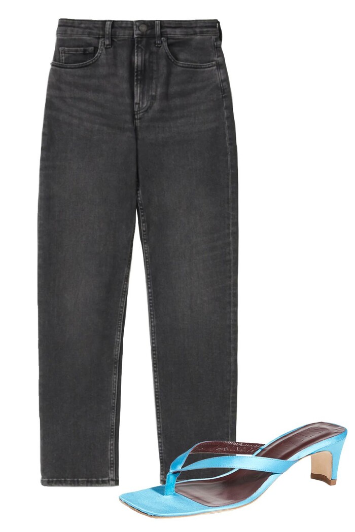 Quần jean mài vốn dĩ đã mang đến màu sắc lung linh hơn so với các mẫu quần trơn. Kết hợp chúng với những đôi giày có quai/ dây giúp bạn trông thật duyên dáng khi bước đi.