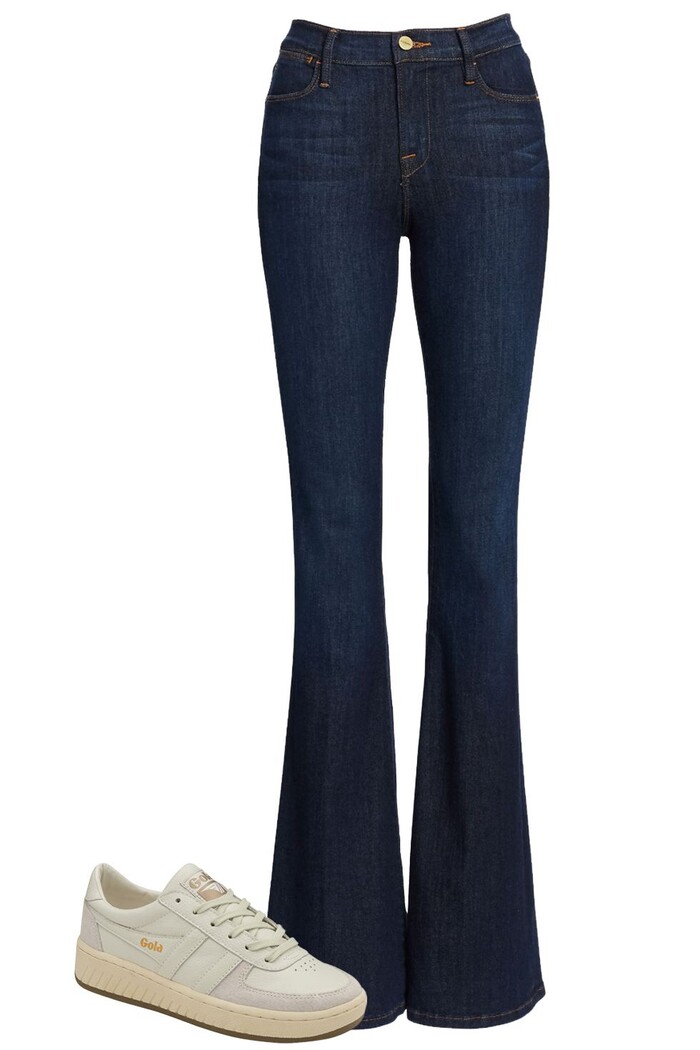 3. Quần ống loe và giày sneaker retro