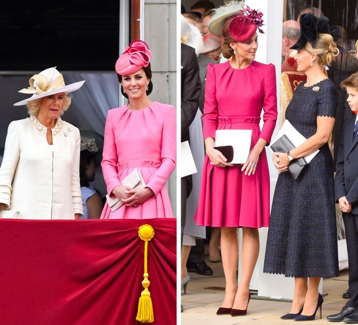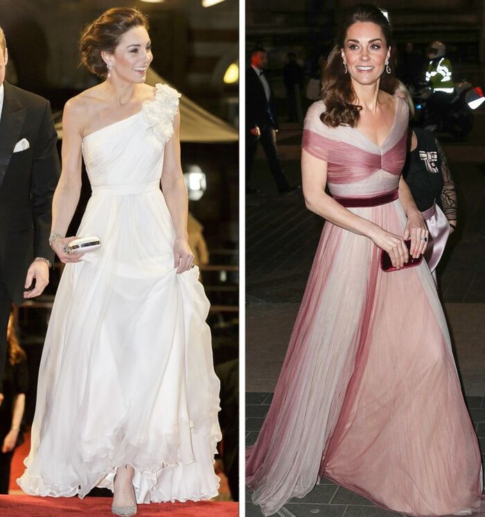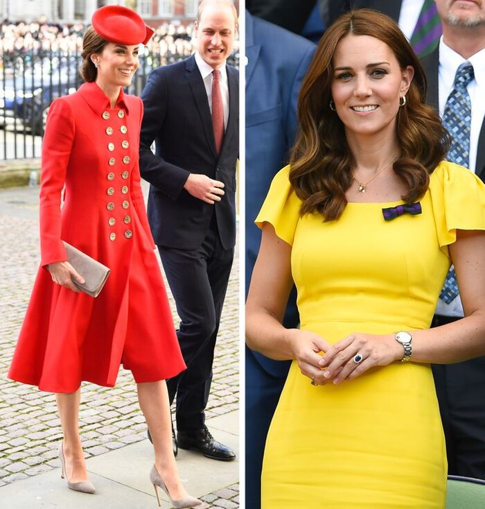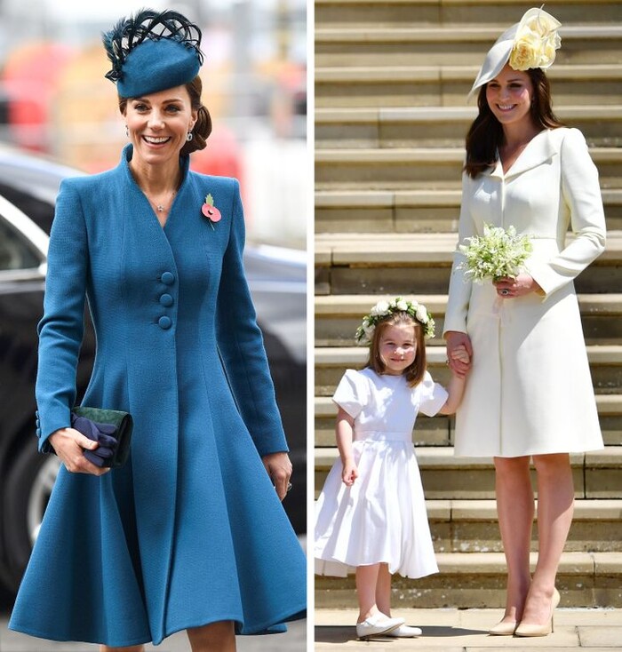 Kate rất thích các mẫu váy kín đáo của Alexander McQueen. Khi đã tìm được kiểu dáng phù hợp, cô sẽ mua nhiều màu để mặc cho nhiều sự kiện khác nhau. Người phụ nữ quyền lực nhất gia đình, Nữ hoàng Elizabeth II cũng mua quần áo giống nhau, chỉ khác màu.