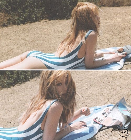 Tấm lưng ong nuột nà với đường cong đắt giá được phô diễn một cách trọn vẹn. Phần eo thắt nổi lên đường cong chữ S đầy mê hoặc, Lee Hyori không hổ danh là nữ hoàng gợi cảm cả trên sân khấu lẫn trong các shoot hình quảng cáo trên tạp chí thời trang. |