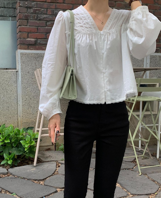 Áo blouse trắng là item diện vào mùa xuân hay hè đều hợp, nhưng lại càng lý tưởng hơn để mặc khi mùa thu tới vì nét dịu dàng, nữ tính.