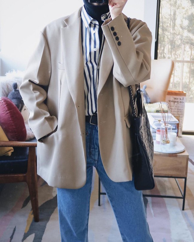 Sự kết hợp giữa nét bụi bặm của quần jeans và nét thanh lịch của blazer vừa sang chảnh vừa hack tuổi. Có đến 12 cách mặc blazer và quần jeans rất đa dạng, chuẩn sành điệu, chị em ghim hết thì không sợ style bị trùng lặp.