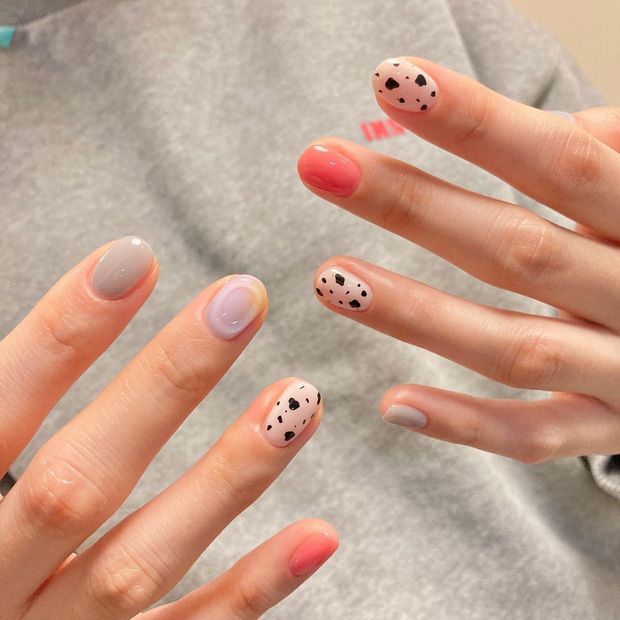 Bạn đã bao giờ thử vẽ mỗi móng một màu chưa? Nếu chưa thì Tết này hãy thử. Yên tâm là bàn tay sẽ không "choé" chút nào vì các gam màu pastel nhẹ nhàng, mix với nhau cực ổn nên rất sáng tay và trông ngọt ngào, nền nã lắm.