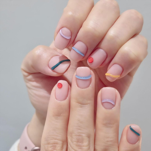 Hội bánh bèo yêu sự dễ thương nhất định mê tít style vẽ nail nhiều màu nhưng hài hoà, nịnh mắt. Để có kiểu vẽ móng xinh, khó đụng hàng, bạn "áp" ngay kiểu này là chuẩn.