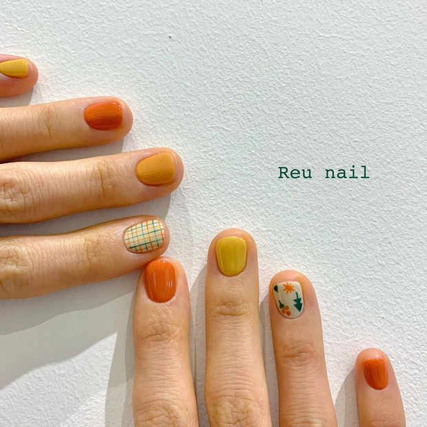 Thích bộ nail sặc sỡ một chút thì đừng ngại "quẩy" những gam màu nóng như vàng, cam trẻ trung, thời thượng.