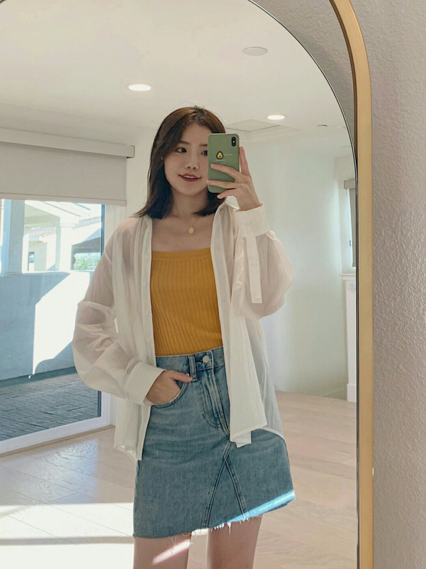 Chân váy jeans vừa trẻ trung, bụi bặm xen lẫn vẻ nữ tính mà không "sến". Điều này cũng đảm bảo mỗi lần bạn diện chân váy jeans, là một lần vẻ ngoài được "trẻ hóa" ít nhất 5 tuổi. Bạn có thể mix chân váy jeans với áo sơ mi, blouse để hoàn thiện vẻ thanh lịch; còn khi muốn hack tuổi "vô đối", hãy kết hợp chân váy jeans cùng áo phông nhé các nàng!