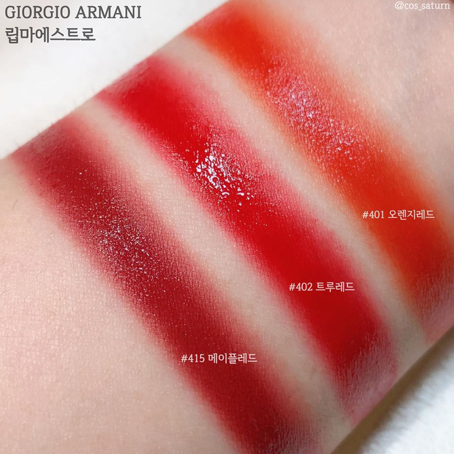 Thỏi son của Giorgio Armani có giá nhỉnh hơn chút nhẹ nhưng từ màu đến chất đều chẳng có gì để "ý kiến" luôn. Tông son 402 là một màu đỏ ánh cam nhẹ siêu xinh và nịnh da phải biết, các cô gái diện lên sẽ giúp gương mặt tươi tắn, rạng rỡ tức thì. Muốn tạo cho chị em bất ngờ với thỏi son hi-end nổi bật, hội anh giai nên ghim ngay thỏi son này là "chuẩn bài" nhé!