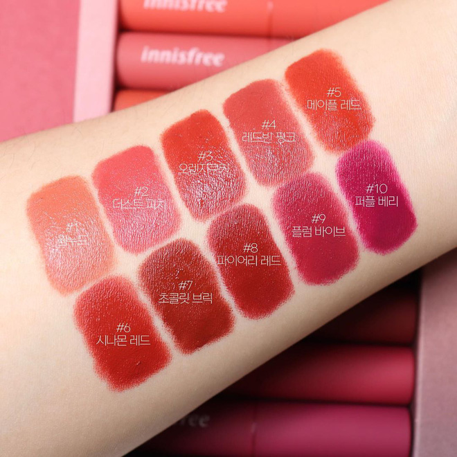 Thỏi son lì ẩm mượt mới của innisfree cũng là món quà 20/10 hay ho và dễ lấy lòng hội "bánh bèo" nữa đấy. Trong đó, màu 06 Cinnamon Red là sắc đỏ an toàn nhưng không kém phần thời thượng, dễ dùng và làm trắng răng, tôn da vô cùng "ổn áp". Muốn makeup nhẹ nhàng hay cần vẻ ngoài tươi tắn thì em son này cũng đáp ứng hết thảy tiêu chí bạn cần ngay.