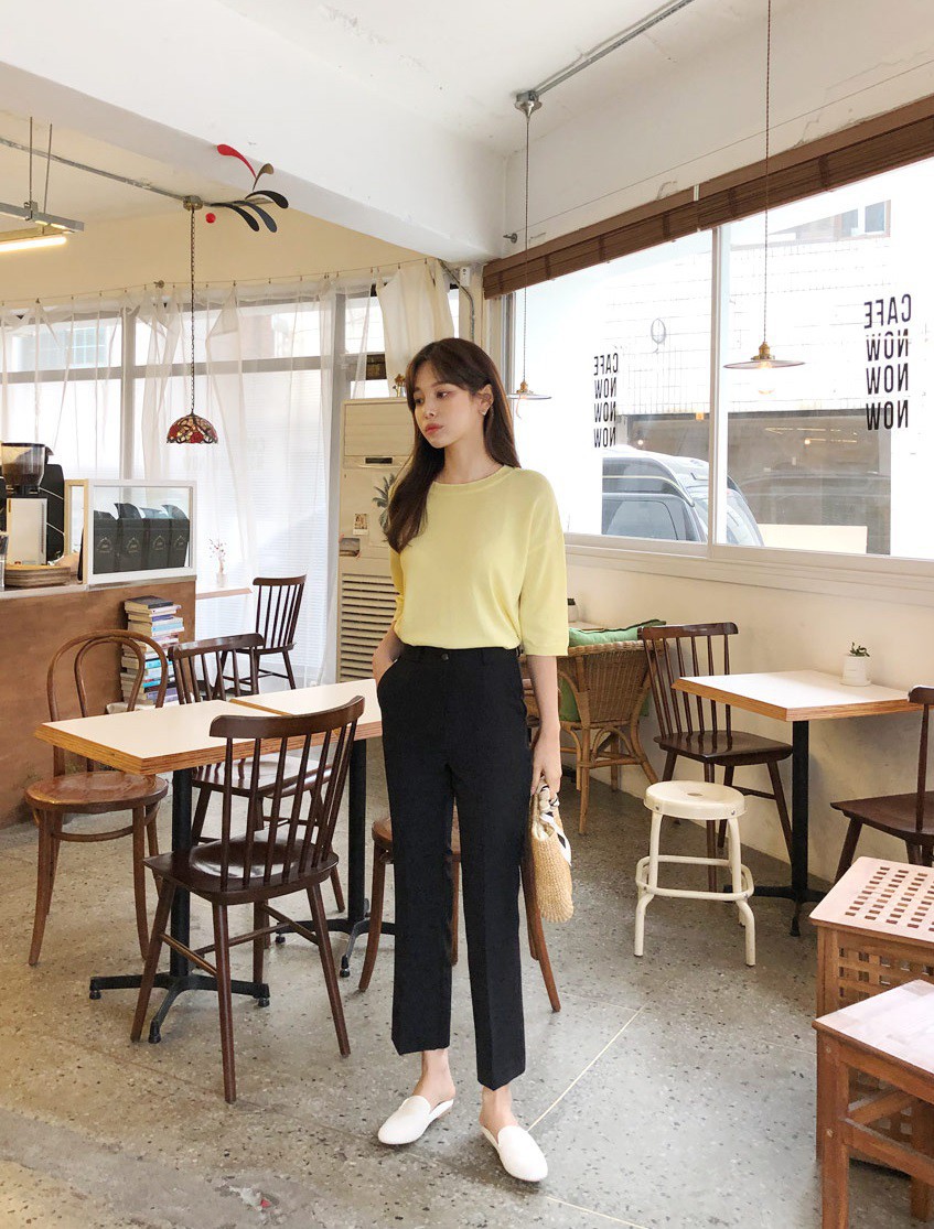 Với độ suông vừa đủ để che khuyết điểm chân to, quần ống đứng chính là item mà những nàng sở hữu cặp chân "cột đình" nên để mắt tới. Và bật mí, nếu bạn chọn quần ống đứng mang gam màu tối như: đen, xanh navy, nâu trầm… đôi chân sẽ được "phù phép" để trở nên thon gọn hơn hẳn. Cuối cùng, bạn đừng quên sơ vin bởi thao tác nhỏ xíu này sẽ giúp chân thêm dài, vóc dáng thêm cao ráo.