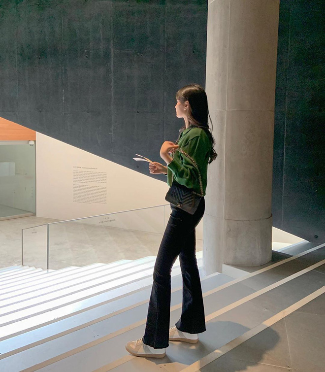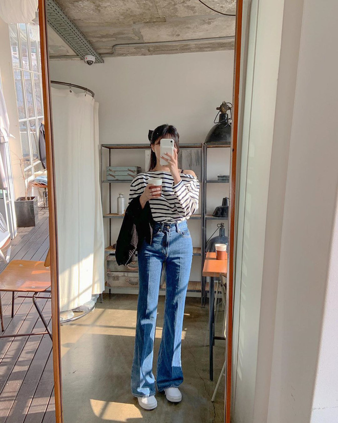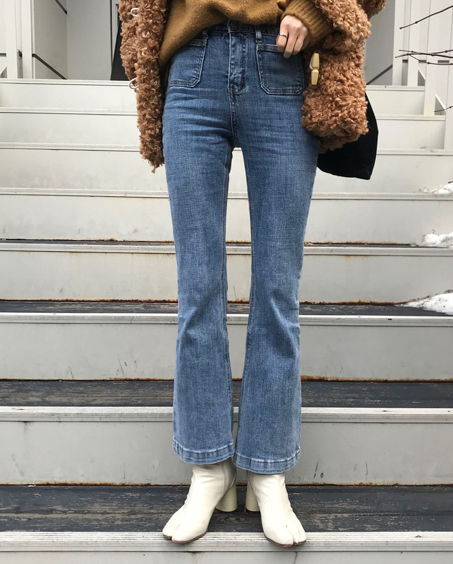 Đây là kiểu quần với nửa trên skinny và nửa dưới là ống loe thời thượng. Nhiều cô gái ắt vẫn chưa có trong tủ mẫu quần này đâu, hoặc lưỡng lự chưa dám sắm. Nhưng lời khuyên là hãy nhìn các tín đồ sành mặc xứ Hàn mà lấy động lực shopping thôi vì hầu như cô nàng nào cũng dạo phố, chưng diện item này ít nhất một lần cả. Đây được xem là kiểu quần vừa tôn dáng, vừa che được chân cong cực chuẩn, mang hơi hướng cổ điển lẫn hiện đại hứa hẹn sẽ rầm rộ trong năm nay.