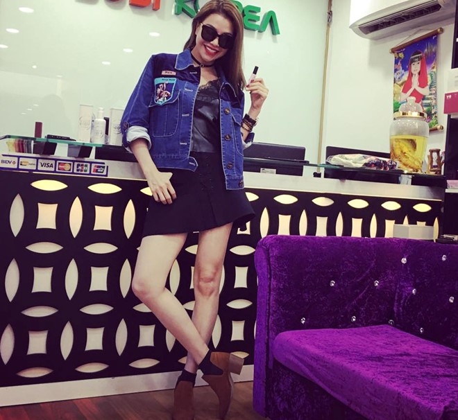 | 1. Áo khoác denim thêu: Năm nay, cùng với xu hướng trang phục thêu lên ngôi thì các mẫu áo khoác denim cũng được làm mới với họa tiết thêu khỏe khoắn. Trong ảnh, Tóc Tiên khoe thời trang năng động với mẫu denim oversized thêu hoa kết hợp bốt cao ngang đùi. |