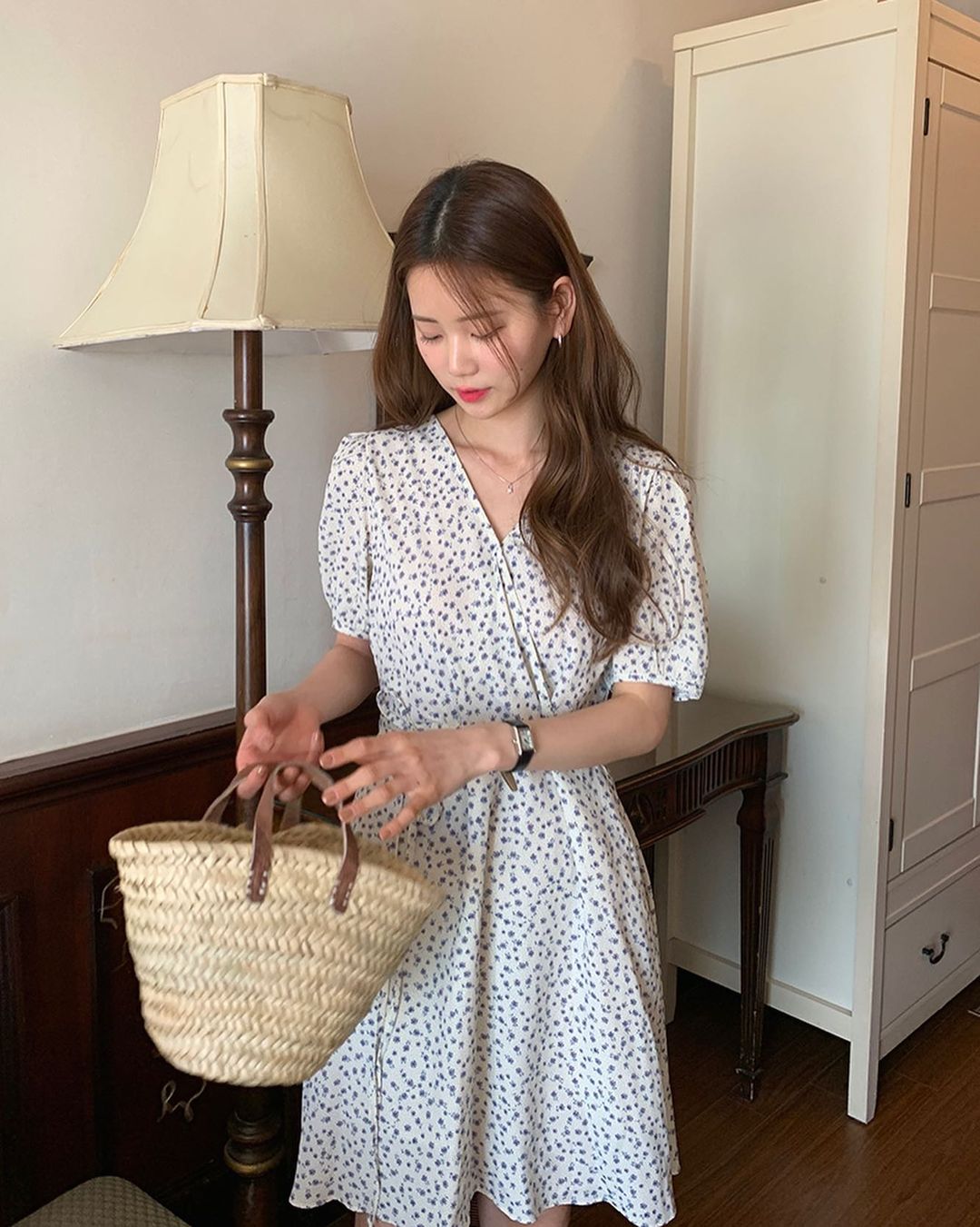 Khi diện váy hoa thì bạn nên áp dụng một số kiểu tóc như là: buộc nửa, búi thấp, tóc xõa thướt tha hay tóc buộc thấp nhé, vẻ ngoài nhờ vậy sẽ đạt 100 điểm tươi xinh.
