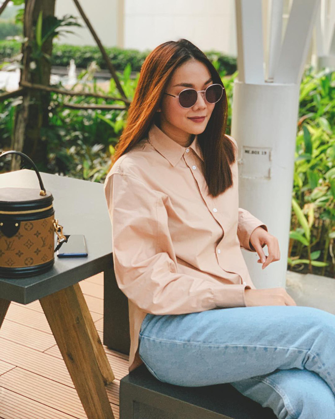 Khác với Hà Tăng, style công sở của Ngô Thanh Vân lại có phần... nam tính hơn một chút. Lựa chọn hàng đầu của "đả nữ" màn ảnh Việt là sơ mi basic trơn màu, quần jeans và các loại quần ống đứng, tạo nên sự thẳng thớm, cứng cáp trong từng set đồ.