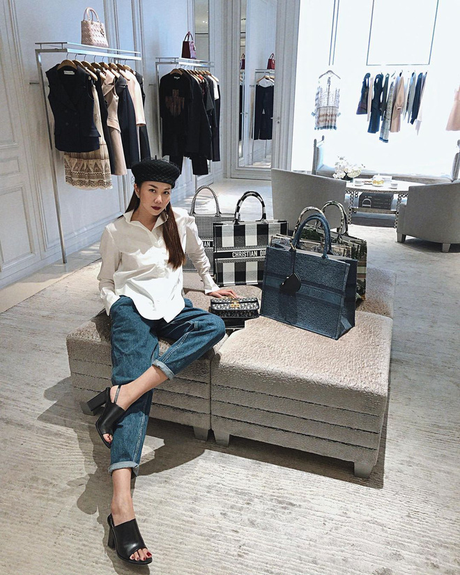 Bên cạnh đó, đôi khi cô nàng cũng kết hợp quần jeans vào set đồ, tạo nên sự trẻ trung, năng động nhưng không kém phần thanh lịch.