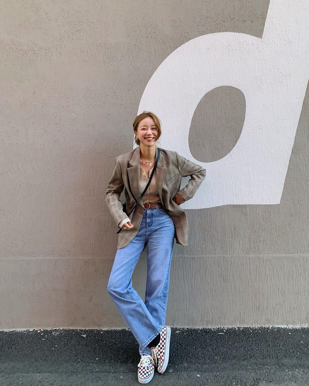 Nhắc đến style công sở là chúng ta nhớ ngay đến những item kinh điển như áo blazer, quần âu, áo sơ mi trắng, giày búp bê, giày sandal… Tuy nhiên nếu chỉ diện như bình thường thì những item này rất dễ khiến hình ảnh của bạn trông cứng nhắc và có đôi chút già nua, kém thời thượng. Với hội gái Hàn, vẫn là những item đó nhưng họ sẽ tạo sự biến tấu trendy bằng cách chọn những item khác biệt. Ví dụ như áo blazer oversize hay quần âu ống loe, quần cạp cao… vậy là bộ cánh đã mới lạ, trendy và thu hút hơn hẳn.