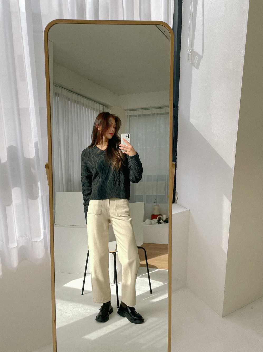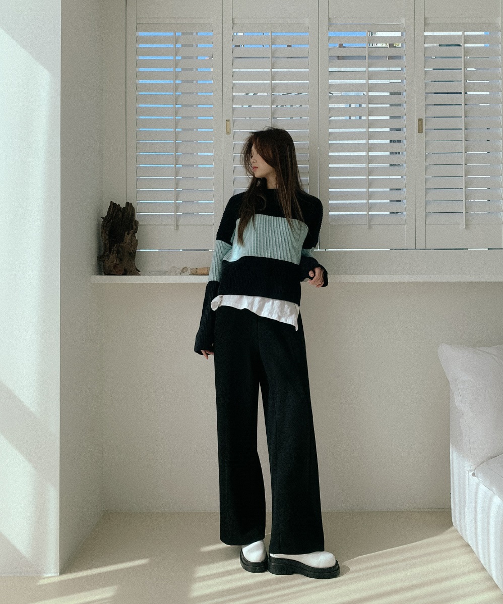 Đây là cách đơn giản nhất để diện áo len tối màu. Khi mix cùng với những chiếc quần như: quần trắng, quần màu be, quần jeans xanh sáng, áo len tối màu như được thổi một luồng gió tươi mới, cả tổng thể trang phục trông cũng sáng sủa hẳn lên. Và hiển nhiên, vẻ ngoài của bạn trông cũng vô cùng trẻ trung, trendy. Bật mí rằng nếu bạn chọn những chiếc quần sáng màu nhưng đủ nhã nhặn, tổng thể trang phục còn ghi điểm ở sự trang nhã, tinh tế nữa. Ý tưởng này quả là hợp để áp dụng nơi công sở, mà đi dạo phố cũng đẹp hút hồn.