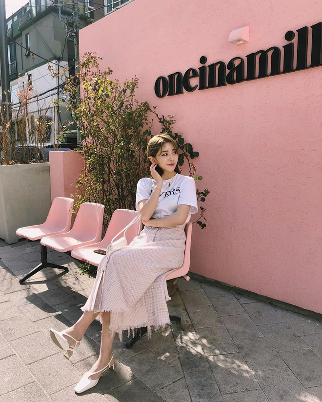 Chắc chắn không thể điểm danh thiếu chân váy dài vì đây cũng là item "sóng đôi" với áo phông chuẩn chỉnh. Nếu sở hữu áo phông in chữ thì càng tốt mà nếu diện chiếc áo trơn màu cũng chẳng sao, chỉ cần mix áo phông với chân váy là style của bạn đã "auto lên đời", xịn mịn hơn, khiến mọi cô gái đều trở nên nữ tính, hiện đại.